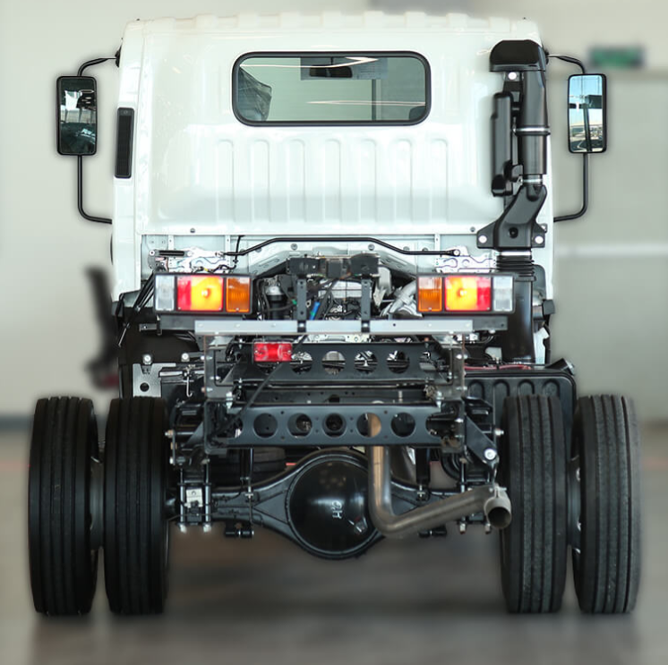 • التصميم الخارجي: تتمتع الشاحنة بحجم كبير يتناسب مع قدرتها على الحمل. الميزة الأبرز هي الشاسيه الطويل البالغ 6.10 متر، الذي يوفر مرونة استثنائية لتركيب مختلف أنواع هياكل الحمولة (صناديق، ثلاجات، صهاريج). وتعتمد على عجلات قياس 17.5 إنش مصممة لتحمل الأوزان الثقيلة.